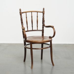 Prachtige antieke houten design stoel van Mundus voor Thonet met armleuningen met prachtig snijwerk €230.00