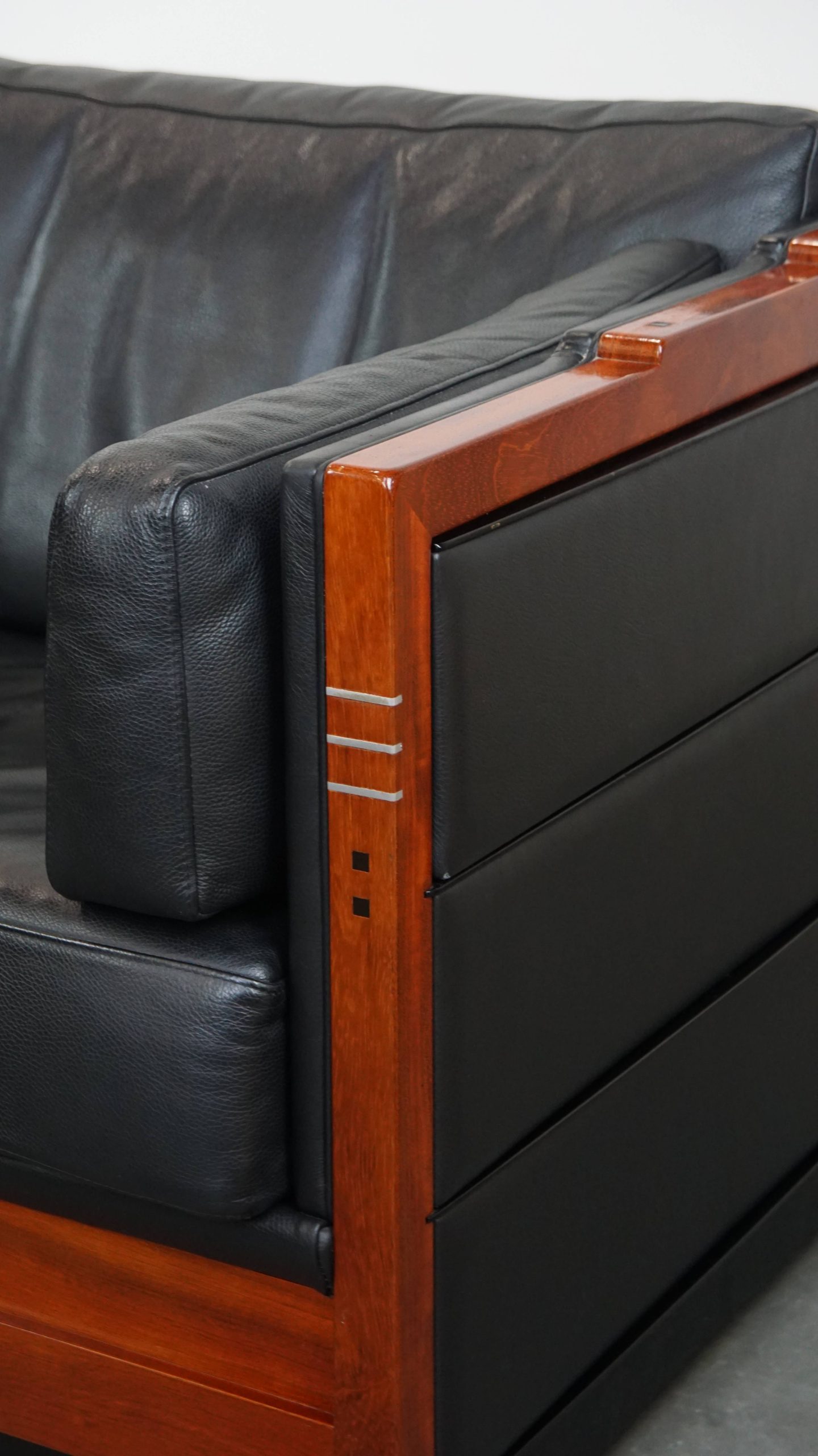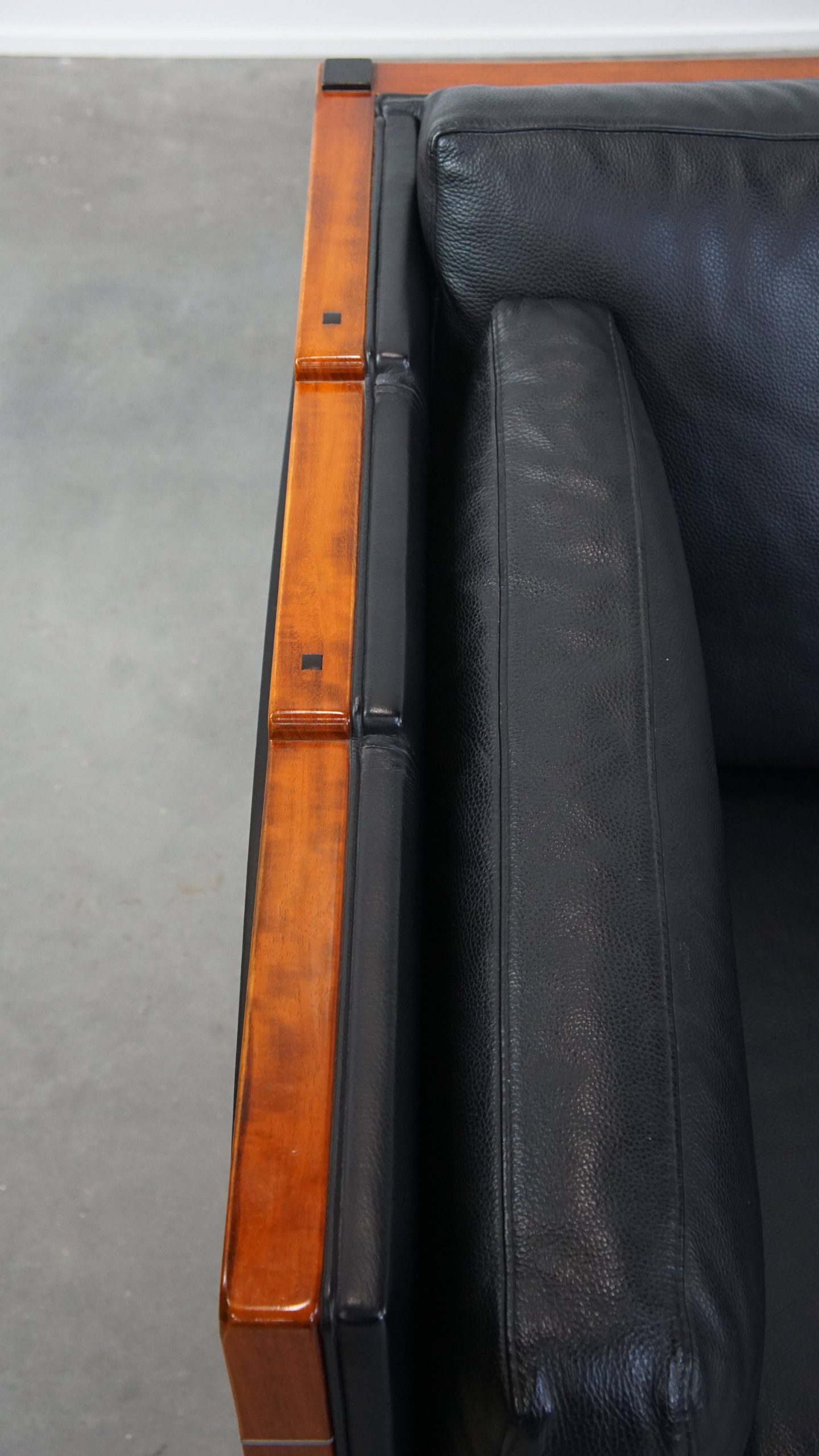 Deze mooie rundleren 2.5 zits design bank van het Nederlandse topmerk Schuitema, model Baldwin, is niet alleen een ware blikvanger maar heeft ook praktische voordelen. Hij is voorzien van uitklapbare bladen aan de buitenkant van de armleuningen waar u uw drankje gemakkelijk op kwijt kunt. Uiteraard heeft deze bank de prachtige opmerkelijke details die wij van Schuitema gewend zijn. Deze bank is uitgevoerd met losse rug-, zit- en sierkussens en heeft een zeer goed zitcomfort. Door jarenlang gebruik heeft hij normale gebruikssporen opgelopen. Structureel is hij in goede en uiteraard direct inzetbare staat en bij gepast gebruik en onderhoud kunt u nog vele jaren op deze bank ontspannen.