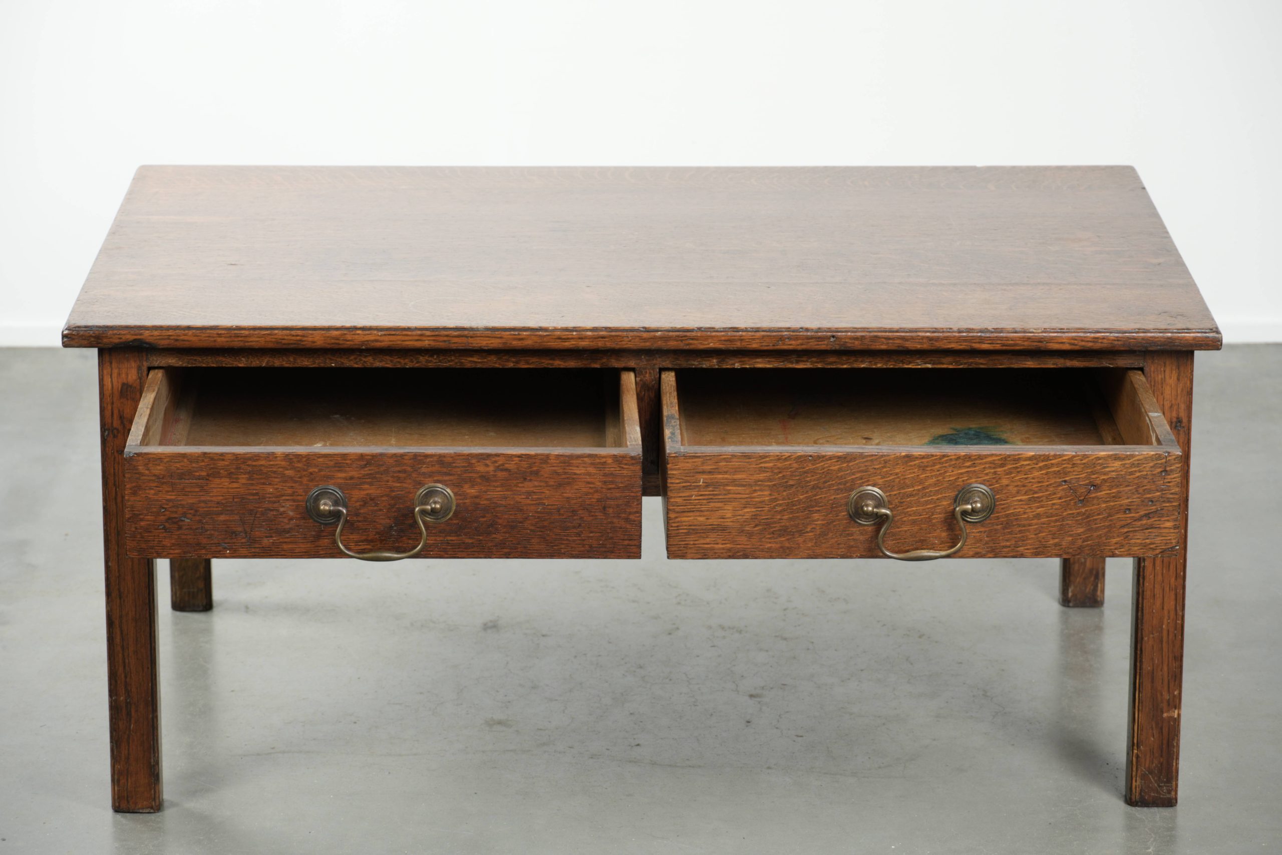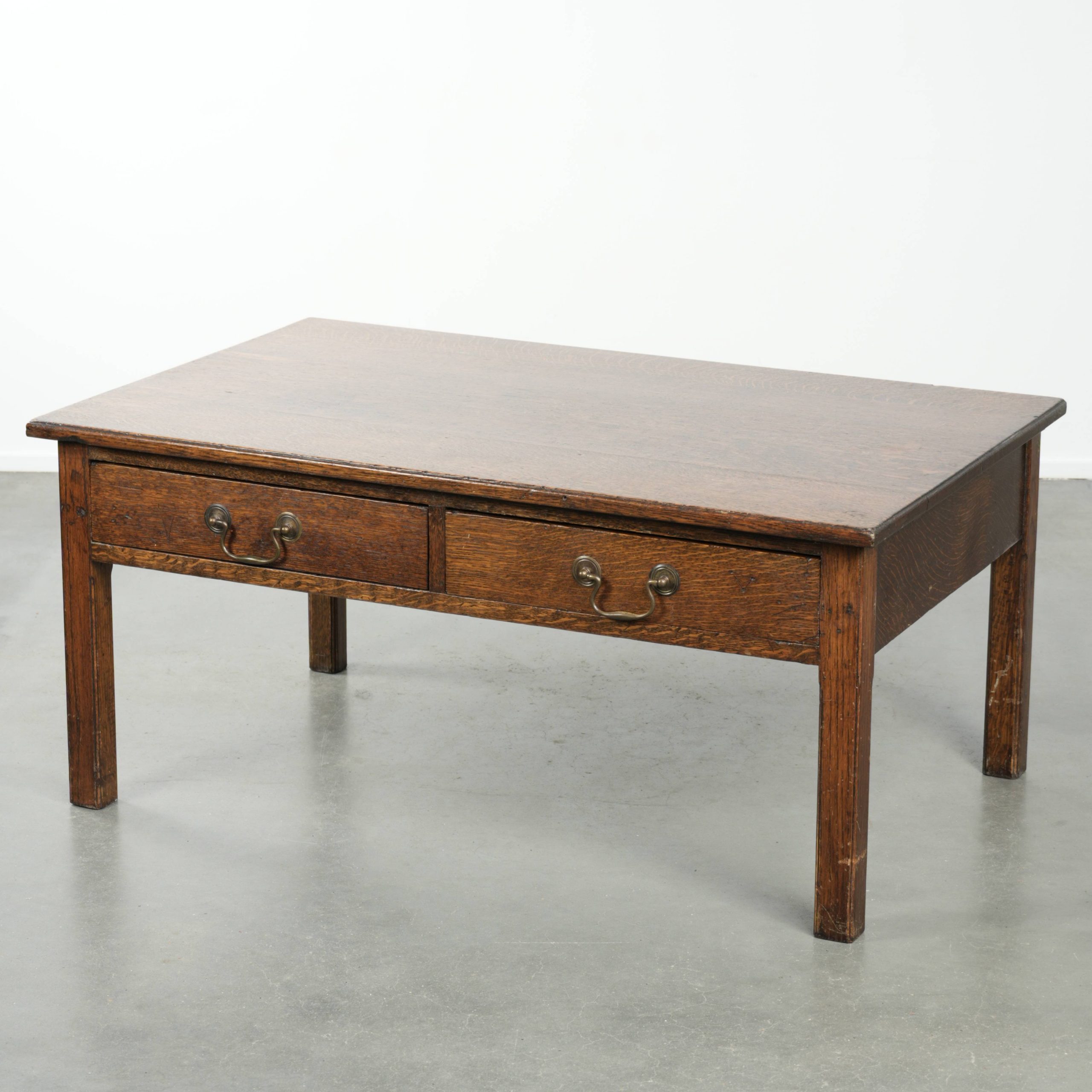 Leuke antieke Engelse salontafel van eikenhout uit de 20e eeuw met twee lades