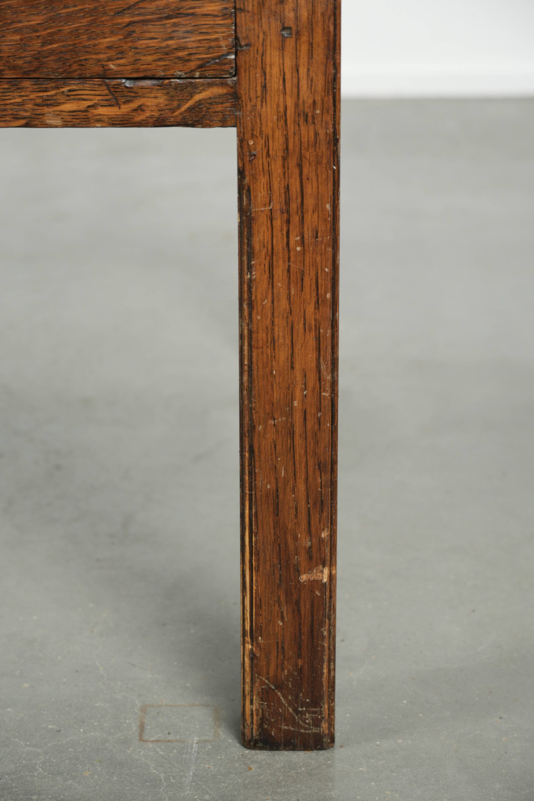 Deze leuke antieke Engelse salontafel laat zich, mede door zijn formaat, gemakkelijk plaatsen in nagenoeg ieder interieur en iedere ruimte. Hij is gemaakt van eikenhout en komt uit de 20e eeuw. Door de twee lades, biedt hij u voldoende opbergmogelijkheden. Door jarenlang verantwoord gebruik heeft hij normale gebruikssporen opgelopen. Structureel is hij in goede en direct inzetbare staat. Waar zet u hem neer?