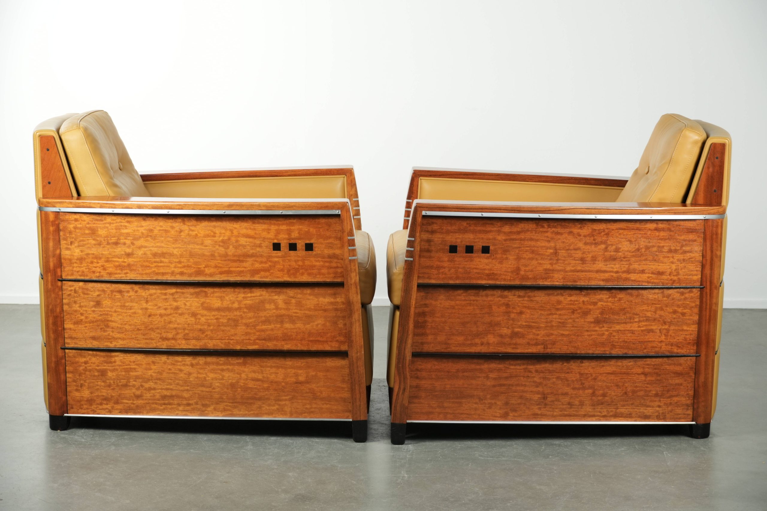 Aangeboden ByThijs deze luxe set van twee prachtige gele rundleren Art Deco design fauteuils van Schuitema, model Frank, uit de Decoforma serie.