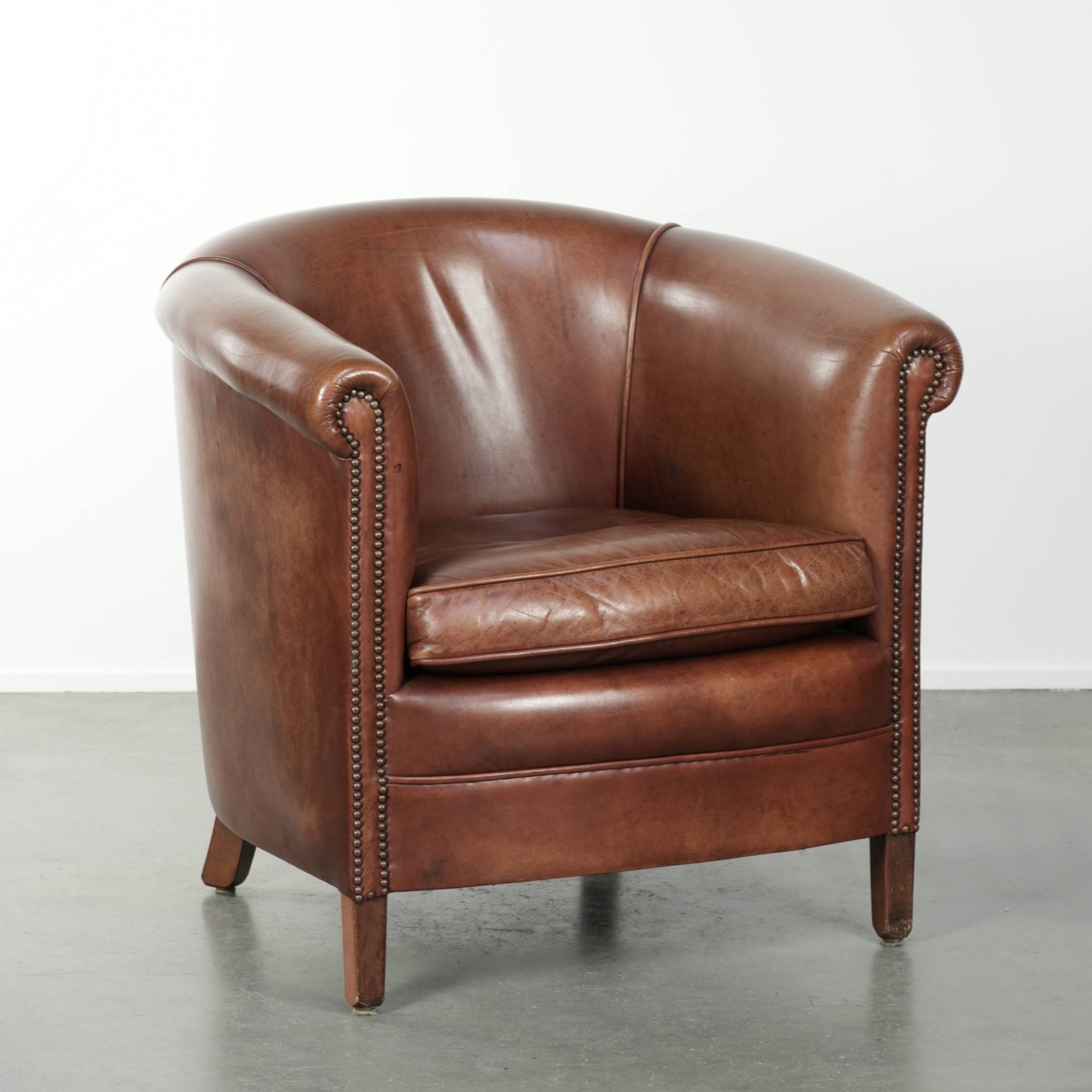 Deze leuke cognac kleurige rundleren clubfauteuil in Engelse stijl laat zich gemakkelijk plaatsen in nagenoeg ieder interieur en heeft een klassieke maar tijdloze uitstraling. De fauteuil heeft een mooie kleur en is gemaakt van rundleer. Hij is voorzien van een los zitkussen en is afgewerkt met siernagels. Voor zijn leeftijd en door verantwoord gebruik heeft hij normale gebruikssporen opgelopen. Structureel is hij uiteraard in een goede en direct inzetbare staat.
