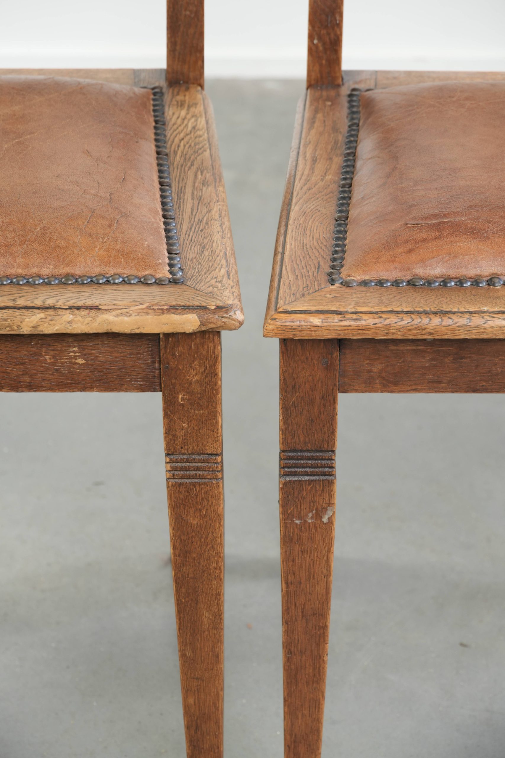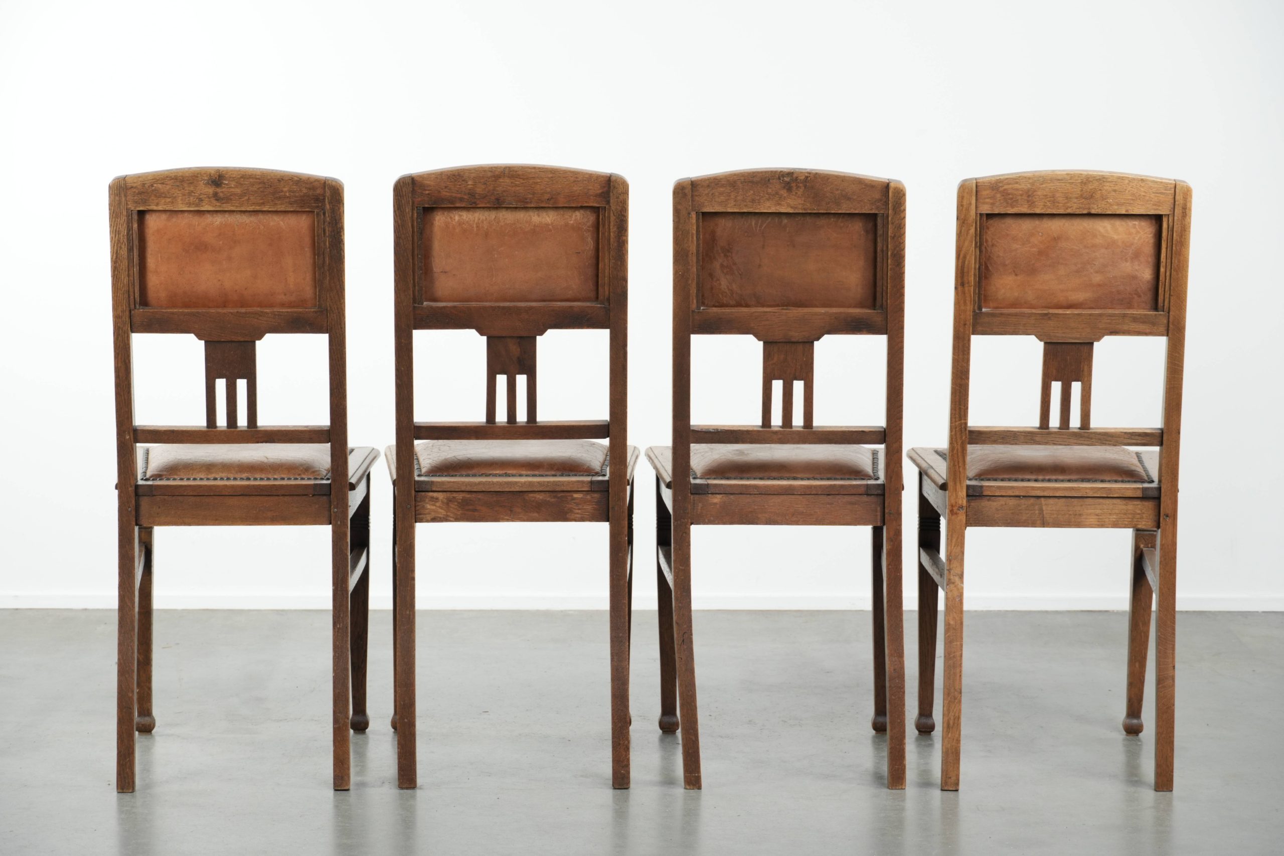 Deze geweldige antieke set Art Nouveau eetkamerstoelen passen door hun tijdloze uitstraling in nagenoeg ieder interieur. Deze stoelen zijn ook heel mooi te combineren met een moderne eettafel, het hoeft dus geen antiek te zijn! Ze zijn bekleed met schapenleer waardoor ze een warme en luxe uitstraling hebben.