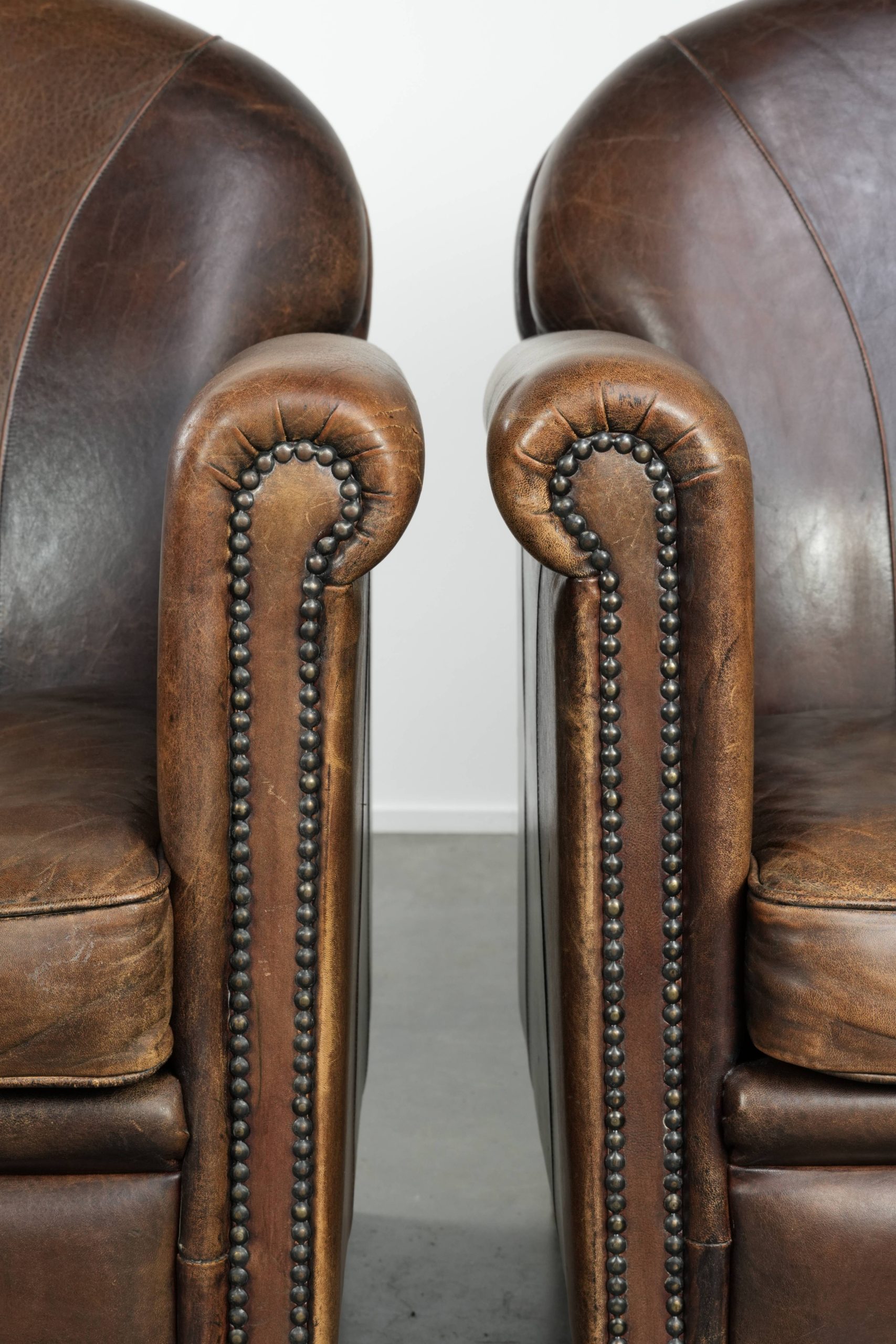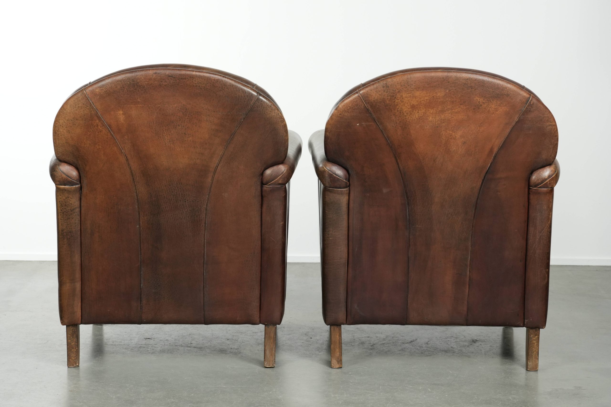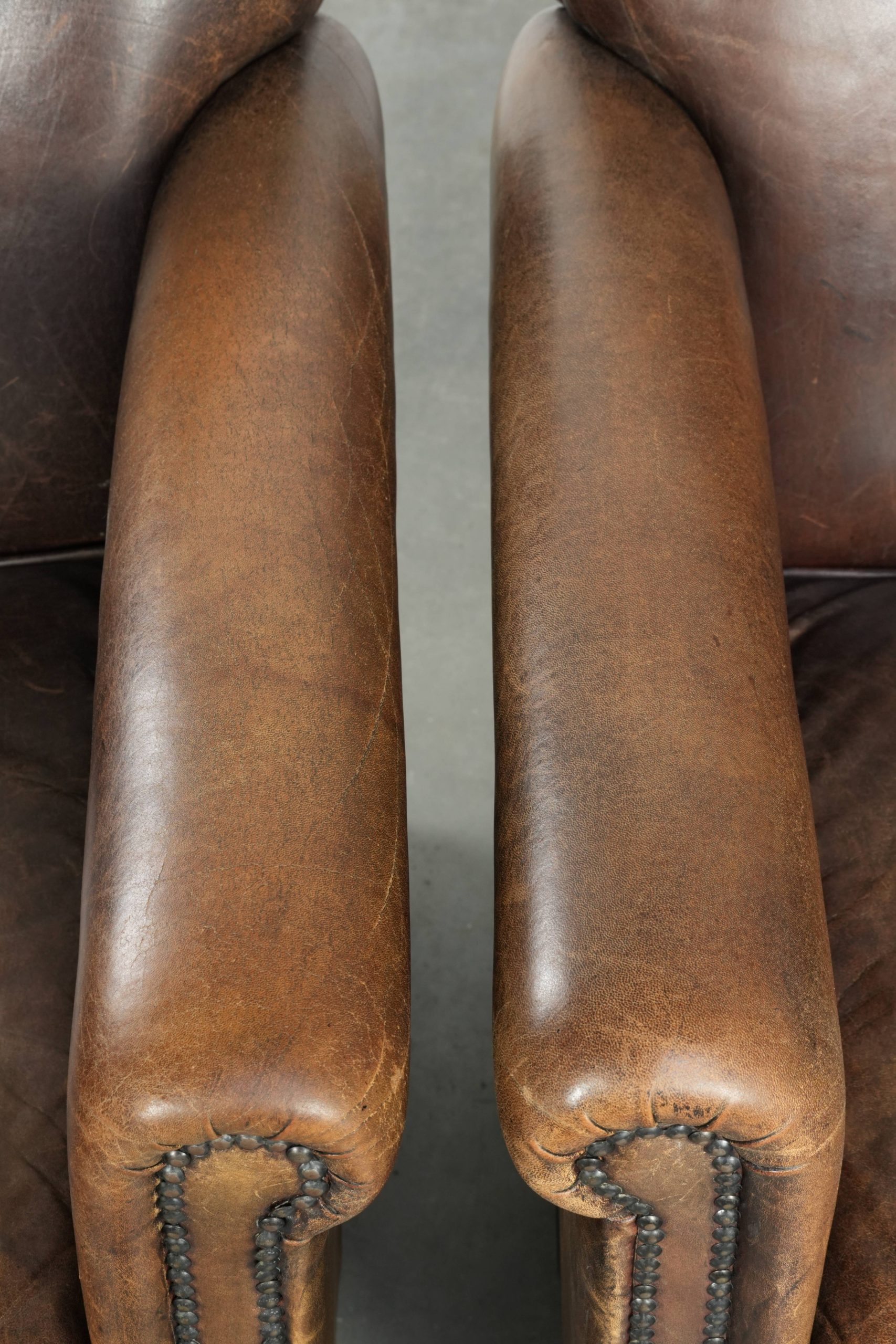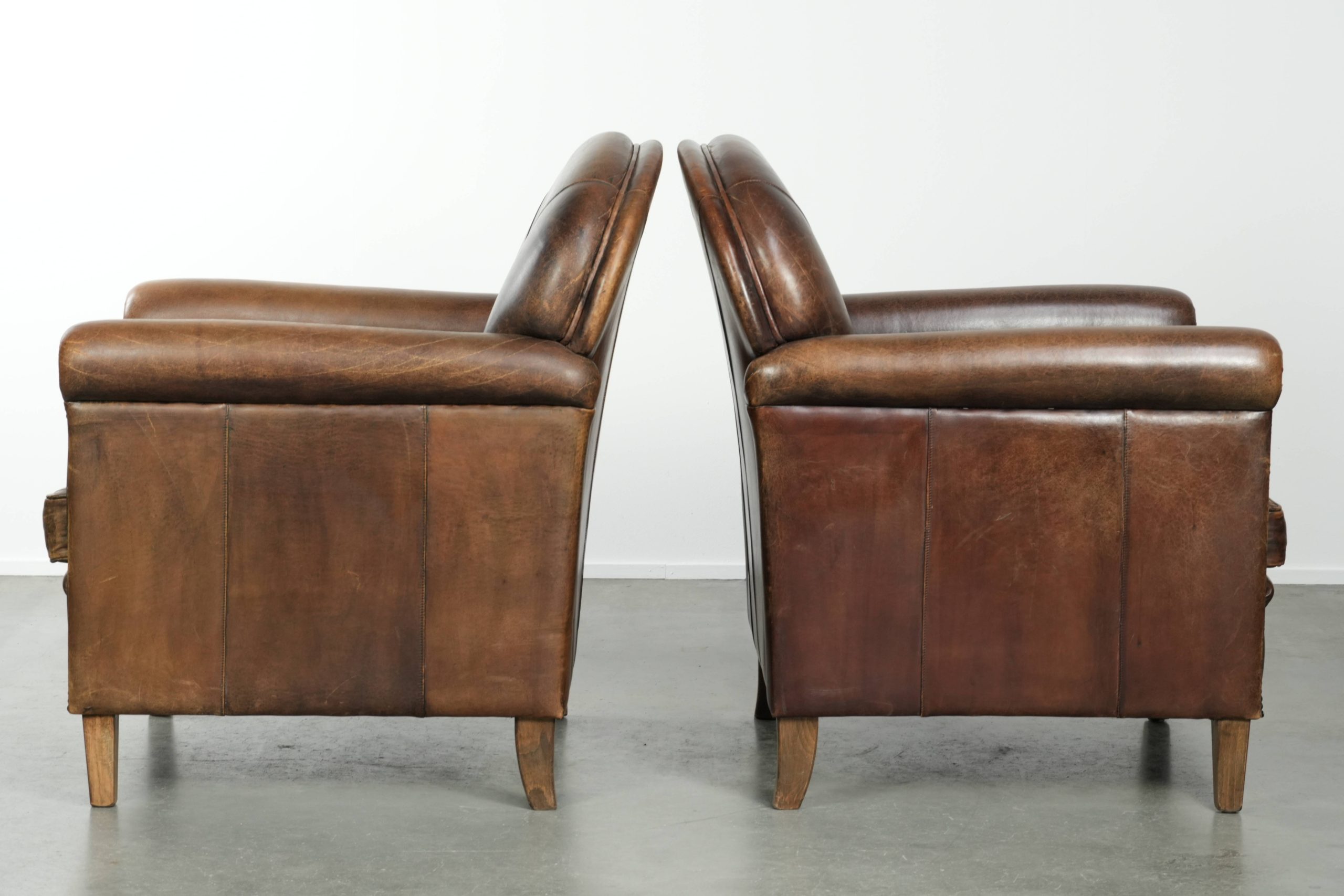 Deze karaktervolle set van twee schapenleren fauteuils/ armchairs laat zich gemakkelijk plaatsen in nagenoeg ieder interieur. Ze komen perfect tot hun recht in de door u gekozen ruimte. Ze voegen in uw ruimte net wat meer warmte, gezelligheid en een vleugje elegantie toe. De fauteuils zijn voorzien van een los zitkussen en bieden u een fijn en correct zitcomfort. Door jaren van verantwoord gebruik hebben ze normale gebruikssporen opgelopen, wat bijdraagt aan hun unieke karakter. Structureel zijn ze in goede en direct inzetbare staat. Waar zet u ze neer?
