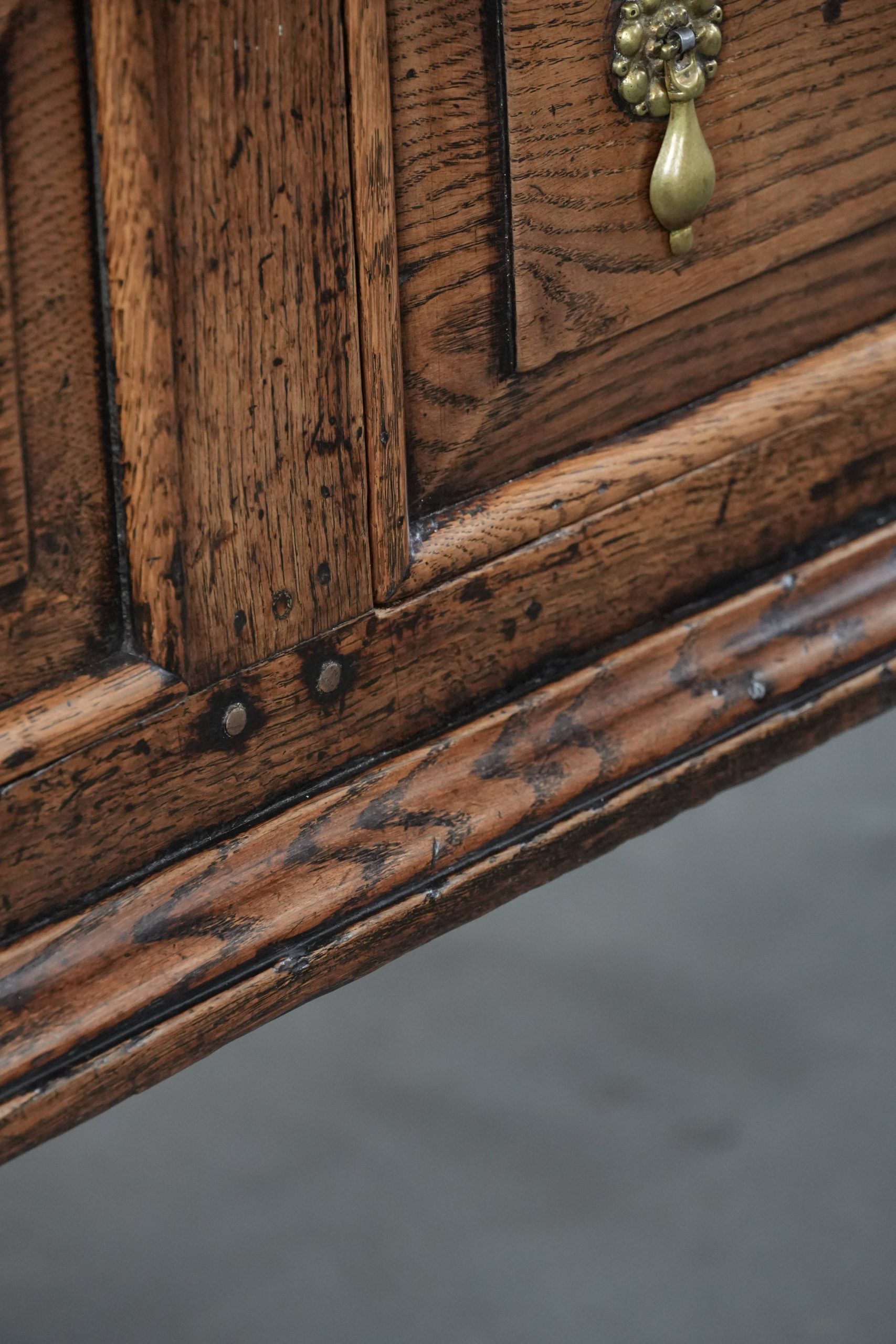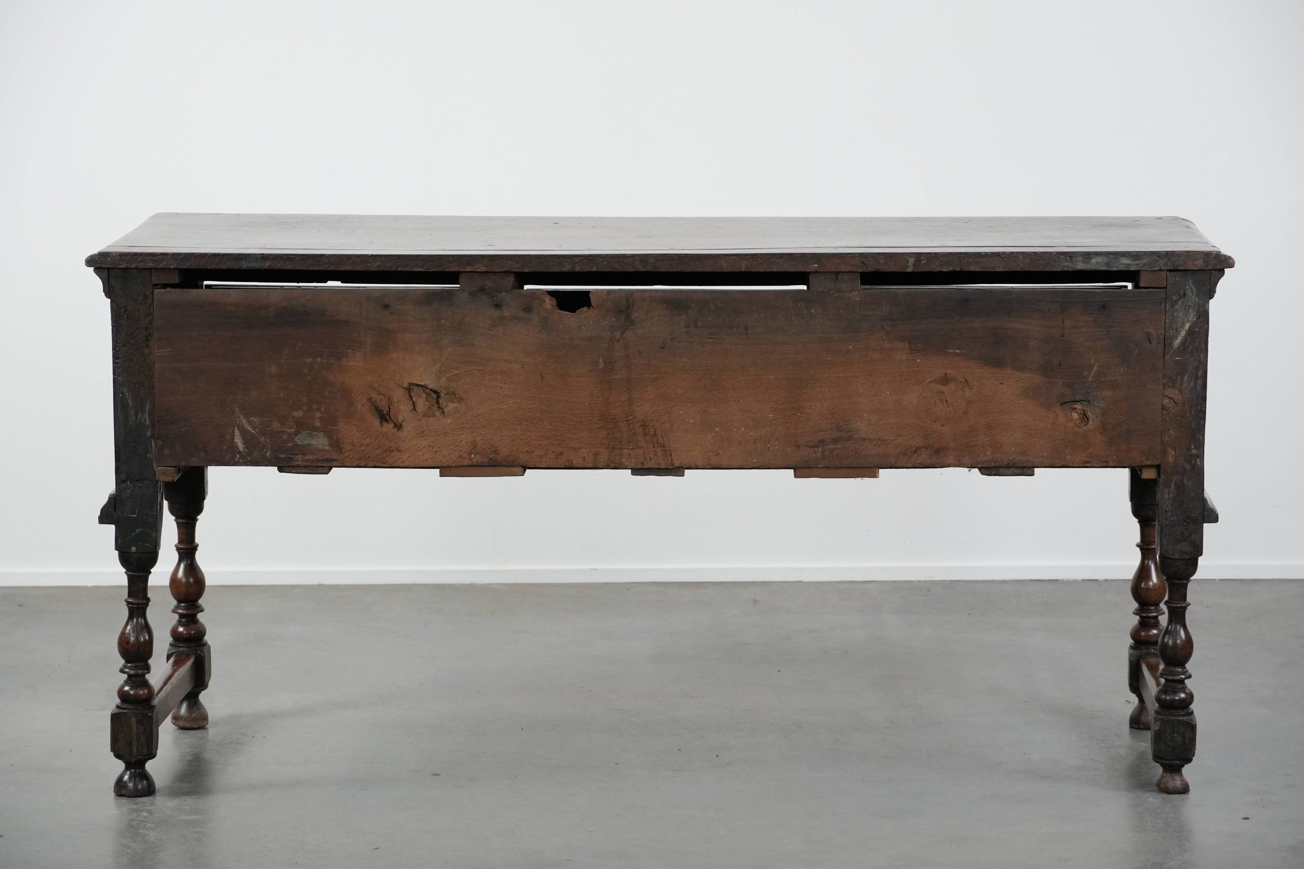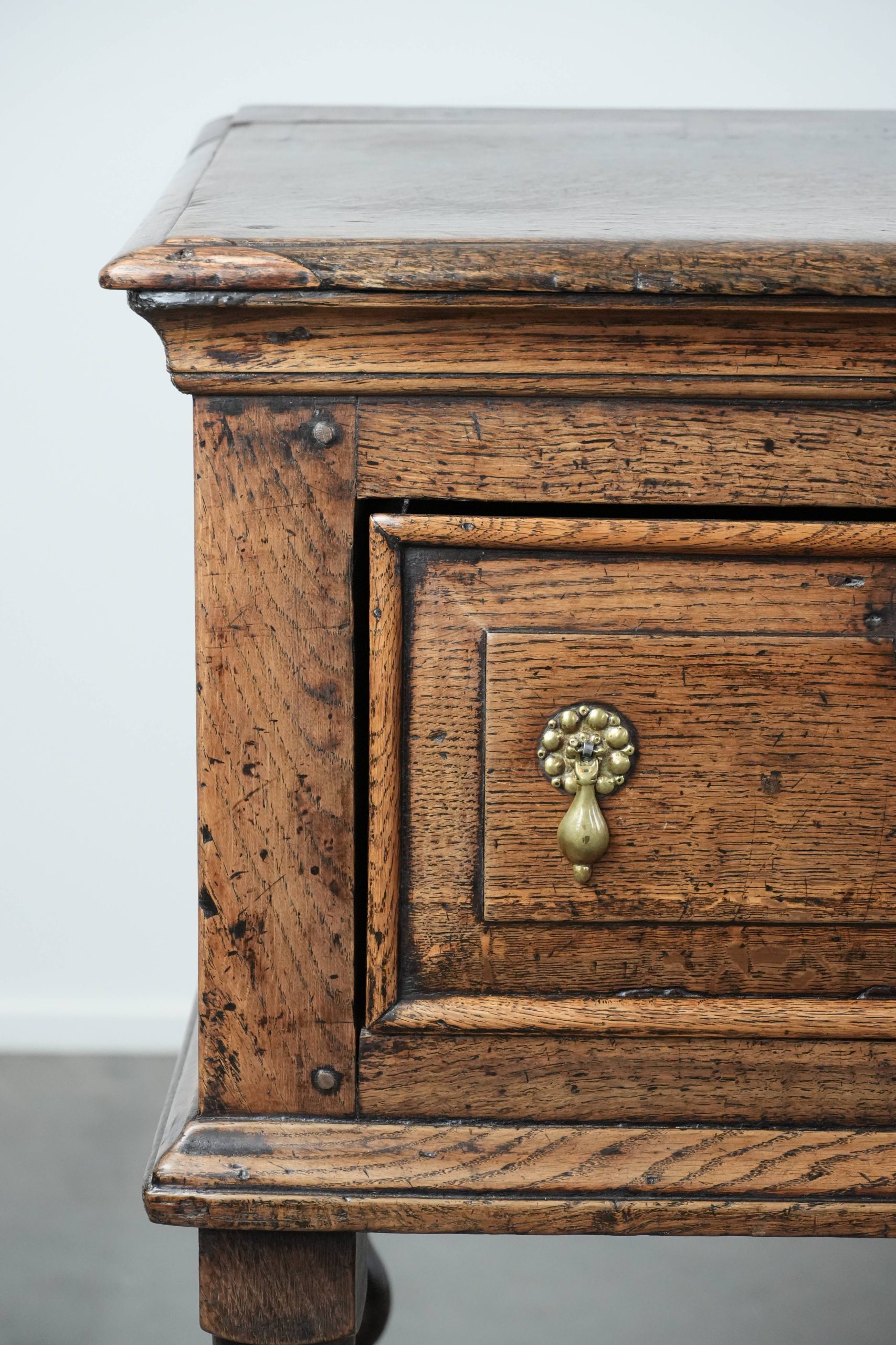 Dit dressoir is een waar pronkstuk voor elk liefhebber van echte antieke items! Dit item komt uit de 18e eeuw en laat zich gemakkelijk plaatsen in zowel een klassiek als in een modern interieur. Hij is gemaakt van eikenhout en uitgevoerd met drie lades en biedt u daardoor voldoende opbergmogelijkheden. De lades zijn voorzien van stijlvolle goudkleurige grepen, die een vleugje elegantie toevoegen. Door jaren verantwoord gebruik heeft hij normale gebruikssporen opgelopen, wat bijdraagt aan zijn prachtige patina. Structureel is hij in een goede en direct inzetbare staat en bij gepast gebruik zal u nog jarenlang plezier hebben van dit item! Waar zet u deze blikvanger neer?